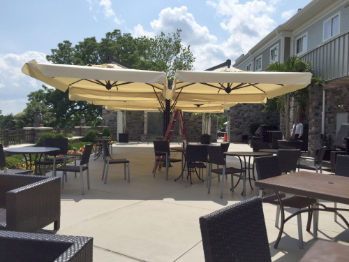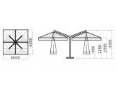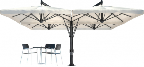 Alu Poker Dark состоит из 4-х отдельных зонтов, закрепленных на одной центральной опоре. Модель - элегантный образец дизайна с особым вниманием к деталям и отделке. Многокупольный зонт подходит для затенения больших пространств: на летних площадках кафе, баров, ресторанов, в парках и других общественных пространствах, при этом занимает минимум площади.