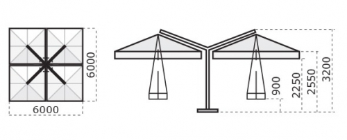Alu Poker Dark состоит из 4-х отдельных зонтов, закрепленных на одной центральной опоре. Модель - элегантный образец дизайна с особым вниманием к деталям и отделке. Многокупольный зонт подходит для затенения больших пространств: на летних площадках кафе, баров, ресторанов, в парках и других общественных пространствах, при этом занимает минимум площади.
