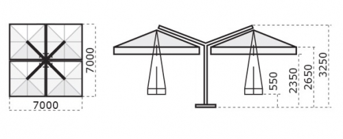 Wood Poker состоит из четырех отдельных зонтов, закрепленных на одной центральной опоре. Модель - элегантный образец дизайна с особым вниманием к деталям и отделке. Двухкупольный зонт подходит для затенения больших пространств, при этом занимает минимум площади.