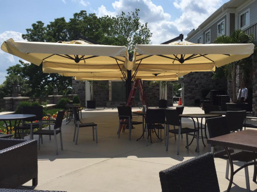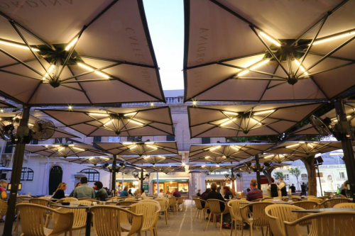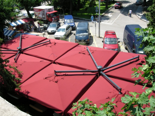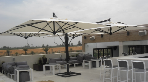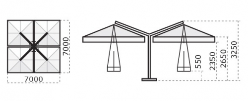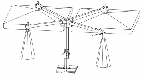 Alu Poker Dark состоит из 4-х отдельных зонтов, закрепленных на одной центральной опоре. Модель - элегантный образец дизайна с особым вниманием к деталям и отделке. Многокупольный зонт подходит для затенения больших пространств: на летних площадках кафе, баров, ресторанов, в парках и других общественных пространствах, при этом занимает минимум площади.