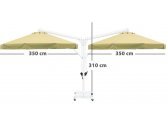 Double Banana - единая база, но больше затенения. Одна опора и два зонта, открывающиеся по бокам, обеспечивают затененную уютную атмосферу на любых открытых площадках. Алюминиевая конструкция, европейская ткань и утяжелительная база гарантируют простое использование.