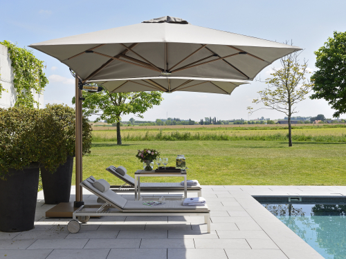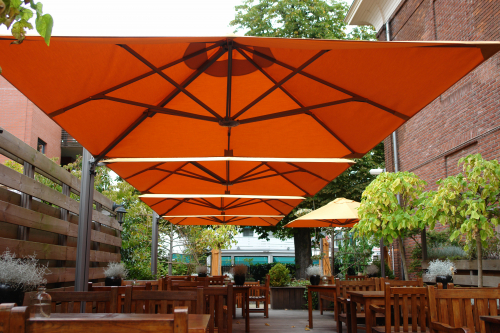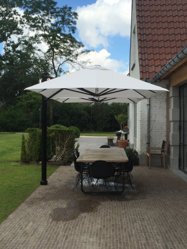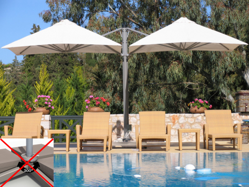 Профессиональный двухкупольный зонт P6 Duo - идеальное решение для затенения открытого пространства, соответствующее вашим потребностям. Стильный дизайн сразу привлекает внимание каждого посетителя, а управление максимально простое, благодаря запатентованной системе "One Move System". Их можно открывать и закрывать одним скользящим движением, что очень удобно. Независимо от того, насколько прочны и надежны зонты, не потребуется много сил, чтобы управлять ими легко и быстро. Также вам не придется беспокоиться о перемещении стульев и столов - зонты открываются и закрываются над мебелью.