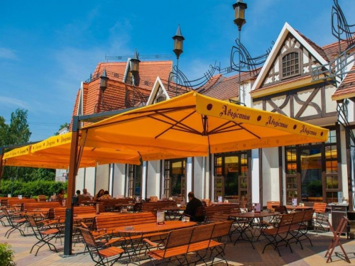 Профессиональный двухкупольный уличный зонт Fellini Alu Wood – это незаменимый аксессуар для защиты от солнца или дождя в летний сезон. Он украсит террасу уличного кафе или ресторана, двор загородного дома и любую другую открытую площадку. Зонт обеспечивает затенение сразу нескольких столиков в летнем кафе или нескольких шезлонгов на пляже. Fellini Alu Wood украсит пространство и сделает времяпрепровождение на улице комфортным и приятным.