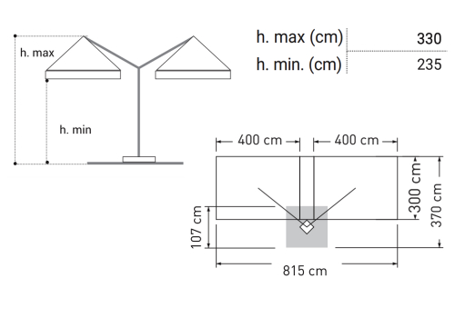 Коллекция уличных зонтов Fellini Alu Wood включает две модели различных размеров: Fellini Alu Wood V и Fellini Alu Wood T. Разница заключается в расположении вертикальных опор, к которым крепятся купола. В модели Fellini Alu Wood V - расположение V-образное, в модели Fellini Alu Wood T, соответственно, T-образное.