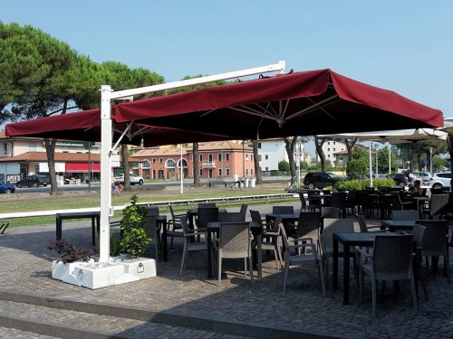 Alu Double Starwhite состоит из двух отдельных зонтов, закрепленных на одной центральной опоре. Модель - элегантный образец дизайна с особым вниманием к деталям и отделке. Двухкупольный зонт подходит для затенения больших пространств, при этом занимает минимум площади.