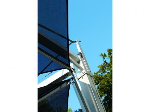 Максимальная четкость форм и размеров благодаря центральной опоре, на которой установлены два купола зонта Doppio. Специальный усиленный каркас делает модель идеальным изделием для затенения больших пространств. Каждый зонт имеет независимый механизм открытия, и оба зонта можно закрыть даже при наличии мебели под ними. Спицы заменяются по отдельности без необходимости разборки всей конструкции, а ткань навеса легко снимается для обслуживания или замены. Фурнитура из нержавеющей стали. Алюминиевый каркас, детали из нержавеющей стали. Стабилизатор обеспечивает более высокую стабильность зонта в очень ветреных условиях. Все продукты FIM разработаны и изготовлены в Италии с использованием лучших материалов для наружного применения, чтобы гарантировать исключительную долговечность даже в самых жестких условиях окружающей среды.