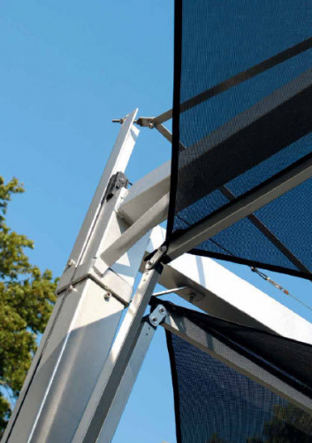 Максимальная четкость форм и размеров благодаря центральной опоре, на которой установлены два купола зонта Doppio. Специальный усиленный каркас делает модель идеальным изделием для затенения больших пространств. Каждый зонт имеет независимый механизм открытия, и оба зонта можно закрыть даже при наличии мебели под ними. Спицы заменяются по отдельности без необходимости разборки всей конструкции, а ткань навеса легко снимается для обслуживания или замены. Фурнитура из нержавеющей стали. Алюминиевый каркас, детали из нержавеющей стали. Стабилизатор обеспечивает более высокую стабильность зонта в очень ветреных условиях. Все продукты FIM разработаны и изготовлены в Италии с использованием лучших материалов для наружного применения, чтобы гарантировать исключительную долговечность даже в самых жестких условиях окружающей среды.