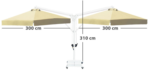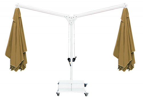 Double Banana - единая база, но больше затенения. Одна опора и два зонта, открывающиеся по бокам, обеспечивают затененную уютную атмосферу на любых открытых площадках. Алюминиевая конструкция, европейская ткань и утяжелительная база гарантируют простое использование.
