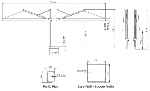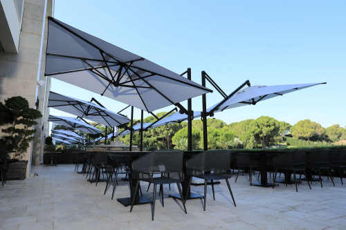 Качество вашего пространства будет повышено с помощью зонта Banana Plus Double, который является очень эстетичным и ярким решением для больших пространств.
