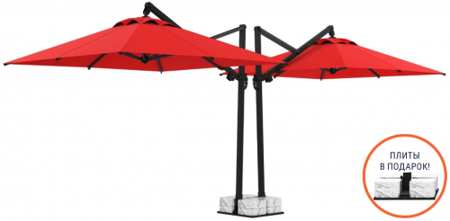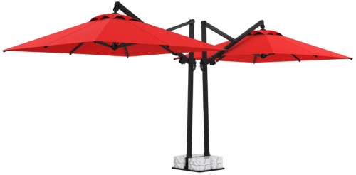 Banana Plus Double - новейшая модель двухкупольного зонта компании THEUMBRELA, которая предлагает еще больше затенения. Две опоры и два зонта, открывающиеся по бокам, обеспечивают затененную уютную атмосферу на любых открытых площадках. Алюминиевая конструкция, европейская ткань и утяжелительная база гарантируют простое использование.