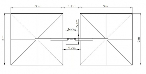 Благодаря утяжелительной базе обеспечивается достаточный баланс и давление. Зонты можно открывать независимо друг от друга при помощи рукоятки, а сами механизмы блокируются для безопасности.
