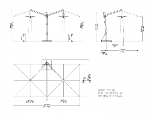Максимальная четкость форм и размеров благодаря центральной опоре, на которой установлены два купола зонта Doppio. Специальный усиленный каркас делает модель идеальным изделием для затенения больших пространств. Каждый зонт имеет независимый механизм открытия, и оба зонта можно закрыть даже при наличии мебели под ними. Спицы заменяются по отдельности без необходимости разборки всей конструкции, а ткань навеса легко снимается для обслуживания или замены. Фурнитура из нержавеющей стали. Алюминиевый каркас, детали из нержавеющей стали. Стабилизатор обеспечивает более высокую стабильность зонта в очень ветреных условиях. Все продукты FIM разработаны и изготовлены в Италии с использованием лучших материалов для наружного применения, чтобы гарантировать исключительную долговечность даже в самых жестких условиях окружающей среды.