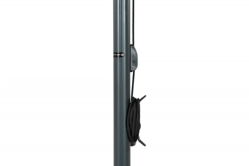 С системой веревочный полиспаст зонт открывается, потянув за веревку на корпусе зонта. После того, как веревка натянута, и купол полностью открыт, зонт фиксируется путем наматывания веревки на крючок на корпусе зонта.