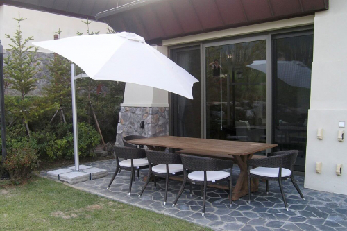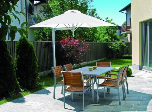 При создании зонтов коллекции Paraflex дизайнеры Umbrosa вдохновлялись манёвренностью и силой человеческой руки, сделав гибкими и мобильными крепления и возможность наклона купола с помощью одной кнопки. Это позволяет создавать тень в нужном месте, в нужное время, в правильном количестве, независимо от положения солнца. Высококачественный каркас выполнен из анодированного алюминия с полиамидными деталями, устойчивыми к ультрафиолету. Купол зонта выполнен из 100% акрила с высокой стойкостью к растяжениям и разрывам, температурным колебаниям (температура использования от -20 до +70°C) и выцветанию. Современный дизайн, надежность и простое использование делают зонт Mono Paraflex незаменимым. Легкая и компактная модель обеспечивает максимальную тень и обладает высокой устойчивостью к ветру (до 49 км/ч).