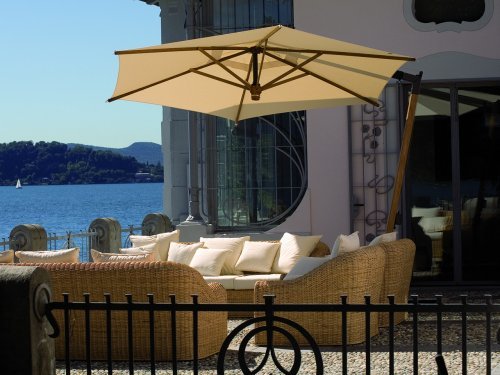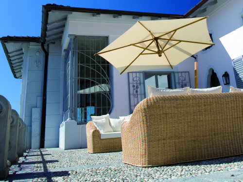 Коллекция зонтов Ischia является топом продаж. Открытый зонт можно наклонить, он вращается вокруг основания на 360° и легко открывается с помощью ручной лебедки. Прекрасно подойдет для частного использования в садах и на летних площадках загородных домов, а также для открытых пространств сферы Contract. Система быстрой замены спиц освобождает от разборки всей конструкции зонта, а ткань купола легко снимается для обслуживания или замены.