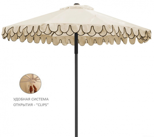 Avocado Clips - профессиональный зонт с центральной опорой из алюминия, что обеспечивает высокую устойчивость модели. Он защитит от ярких солнечных лучей и создаст приятную затененную атмосферу в частных садах, открытых летних площадках кафе, баров и ресторанов, зоны возле бассейна.