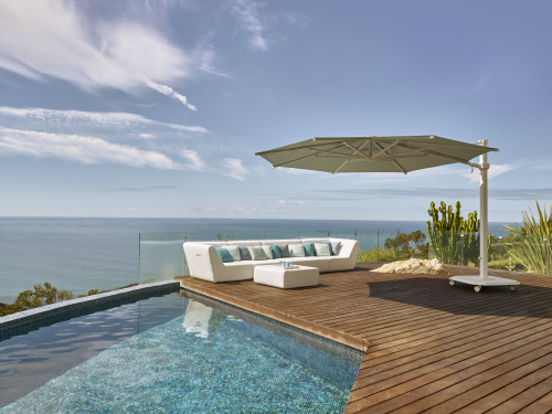 Несмотря на большой размер, зонт легко открывается с помощью ручной лебедки. Большой зонт с боковой опорой JCP.4 - это стильная идея для открытых площадок ресторанов, кафе, бассейнов.