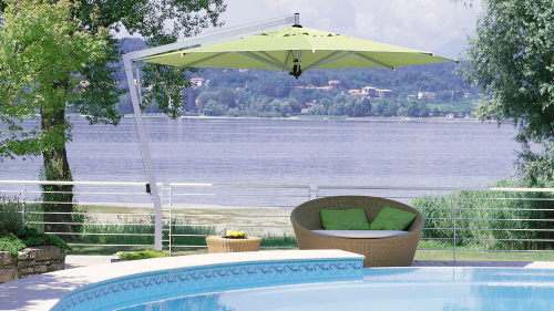 Элегантный и функциональный зонт Capri станет украшением частного сада или террасы кафе и ресторана. Он вращается вокруг основания на 360° и легко открывается с помощью ручной лебедки. Имеется система быстрой замены спиц, ткань купола легко снимается для обслуживания или замены.