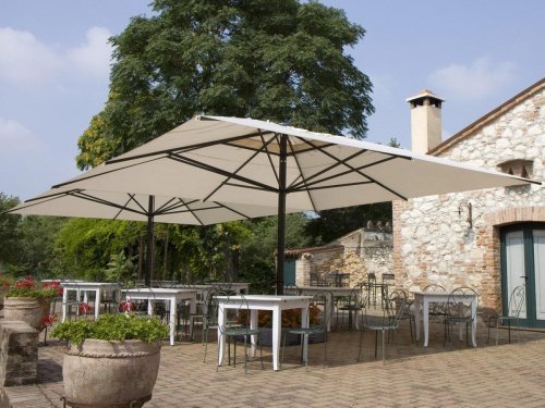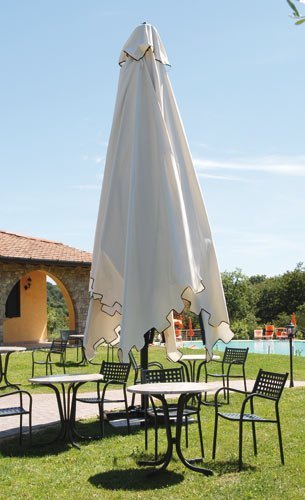 Профессиональный зонт Capri Dark разработан специально для затенения больших открытых пространств, при этом он сам занимает небольшую площадь. Повышенная прочность материалов конструкции и телескопическая система открытия-закрытия зонта, при использовании которой нет необходимости передвигать мебель под зонтом, позволяют использовать Capri Dark в уличных кафе и ресторанах.