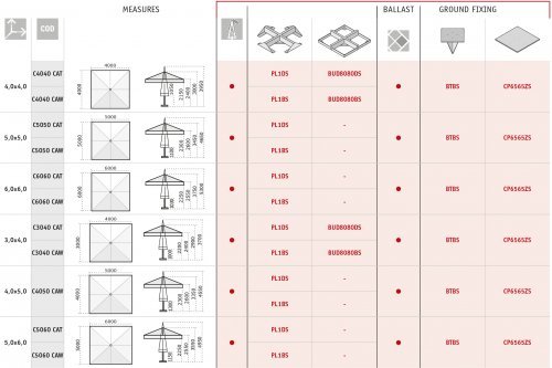 Таблица выбора утяжелительных баз для стабилизации зонта.