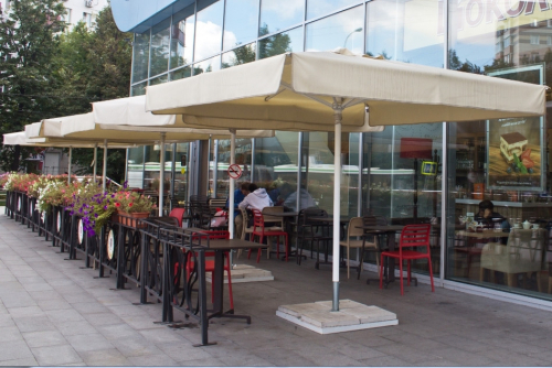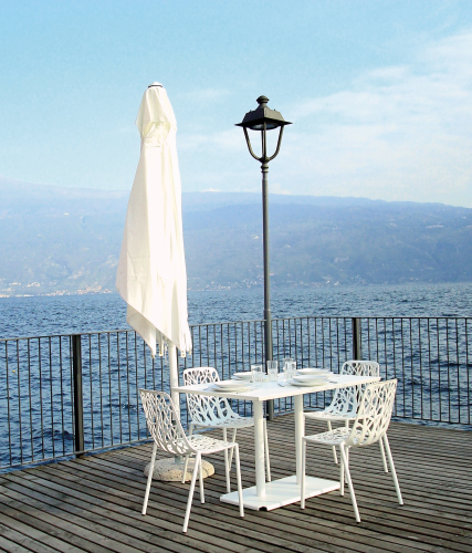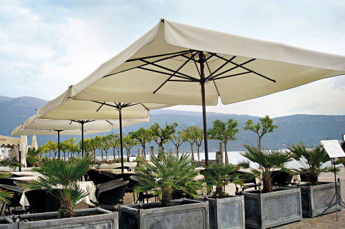 Профессиональный уличный зонт Petrarca Aluminium с центральной опорой подойдет для затенения пространств различного назначения: как домашнего сада, так и летней площадки кафе. Телескопическая система открытия-закрытия зонта позволяет использовать модель в уличных кафе и ресторанах и при этом нет необходимости передвигать мебель под зонтом. При закрытии зонт приподнимается и закрывается.