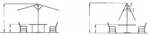 Максимальная высота открытого зонта (с базой): 2700 мм.