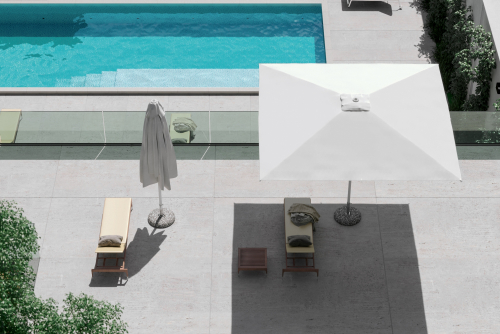 Каркас зонта выполнен из окрашенного алюминия в белый цвет или антрацит, купол может быть выполнен из натурального или окрашенного акрила, Tempotest Para или ПВХ. Благодаря конструкции из алюминия и порошковому покрытию зонт устойчив к коррозии и не боится морской соли. Все ткани имеют высокую стойкость к выцветанию, что обеспечивает долгий срок службы.