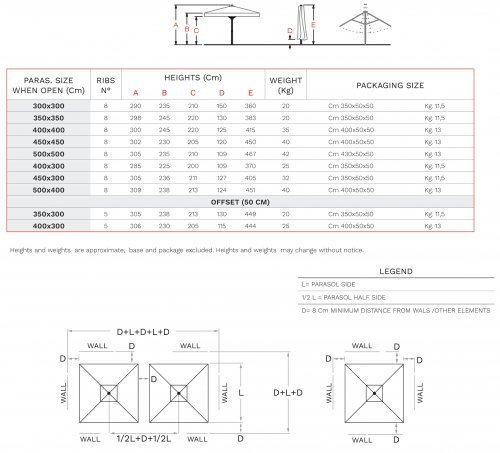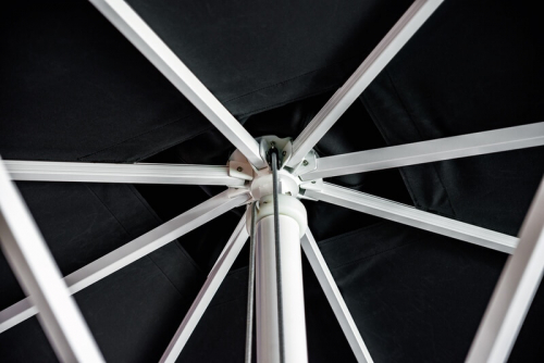 LED Lighting KIT - cистема светодиодного освещения с кабелями, проходящими внутри рамы зонта. Может состоять из 4, 5 либо 8 светодиодных панелей из анодированного алюминия. По умолчанию - теплый свет 2700K, по запросу - холодный свет либо комплект RGB-ламп. Степень защиты IP65 - полная защита от проникновения пыли, защита от струй воды со всех направлений.