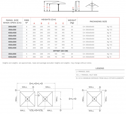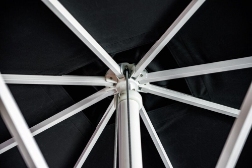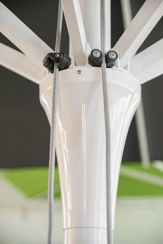 LED Lighting KIT - cистема светодиодного освещения с кабелями, проходящими внутри рамы зонта. Может состоять из 4, 5 либо 8 светодиодных панелей из анодированного алюминия. По умолчанию - теплый свет 2700K, по запросу - холодный свет либо комплект RGB-ламп. Степень защиты IP65 - полная защита от проникновения пыли, защита от струй воды со всех направлений.