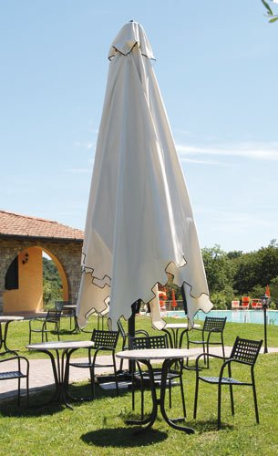 Профессиональный зонт Capri Dark разработан специально для затенения больших открытых пространств, при этом он сам занимает небольшую площадь. Повышенная прочность материалов конструкции и телескопическая система открытия-закрытия зонта, при использовании которой нет необходимости передвигать мебель под зонтом, позволяют использовать Capri Dark в уличных кафе и ресторанах.