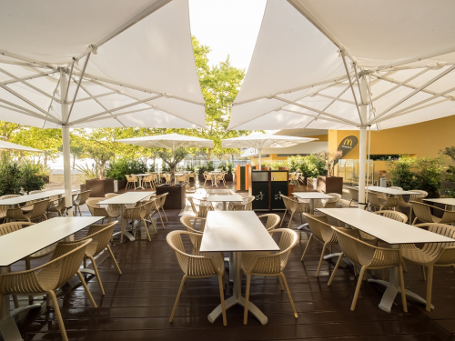 Профессиональный зонт Capri Starwhite разработан специально для затенения больших открытых пространств, при этом он сам занимает небольшую площадь. Повышенная прочность материалов конструкции и телескопическая система открытия-закрытия зонта, при использовании которой нет необходимости передвигать мебель под зонтом, позволяют использовать Capri Dark в уличных кафе и ресторанах.