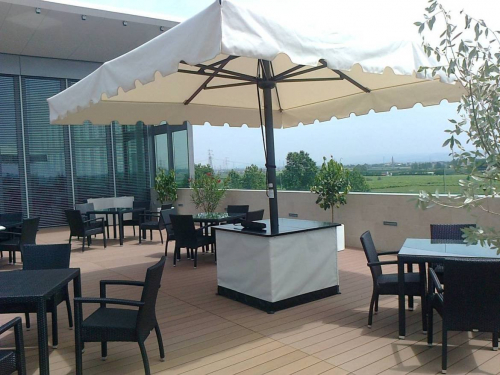 MaxiPro - это эксклюзивный зонт с мощной, элегантной центральной опорой и максимальной площадью покрытия до 49 м² - абсолютный герой открытых площадок. Он оснащен телескопической самоуравновешенной системой, которая позволяет легко и безопасно открывать и закрывать зонт, не перемещая мебель под ним, просто используя натяжную веревку. Зонты MaxiPro адаптированы для профессионального использования в ресторанах, отелях, барах, кафе и частных виллах.