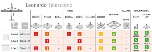Leonardo Telescopic - зонт повышенной прочности, идеально подходит для использования в уличных кафе и массовых местах отдыха. Телескопический механизм открытия-закрытия зонта позволяет закрывать-открывать зонт без необходимости перемещения расположенной под ним мебели.