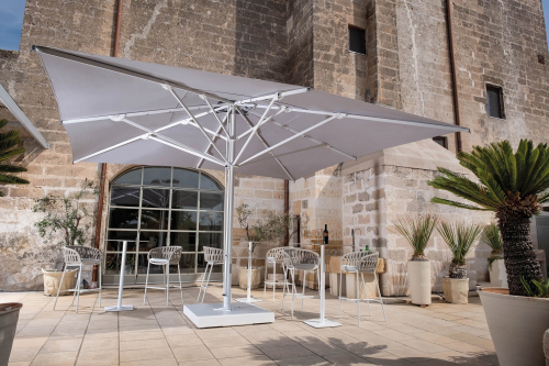 Профессиональный зонт Capri Starwhite разработан специально для затенения больших открытых пространств, при этом он сам занимает небольшую площадь. Повышенная прочность материалов конструкции и телескопическая система открытия-закрытия зонта, при использовании которой нет необходимости передвигать мебель под зонтом, позволяют использовать Capri Dark в уличных кафе и ресторанах.