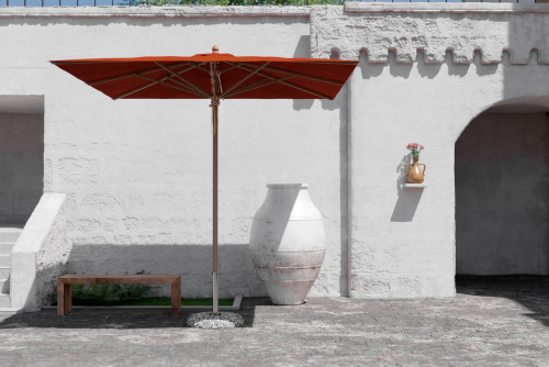 Каркас зонта выполнен из окрашенной твердой древесины кото высокого качества, купол может быть выполнен из натурального или окрашенного акрила, Tempotest Para или ПВХ. Все ткани имеют высокую стойкость к выцветанию, что обеспечивает долгий срок службы.