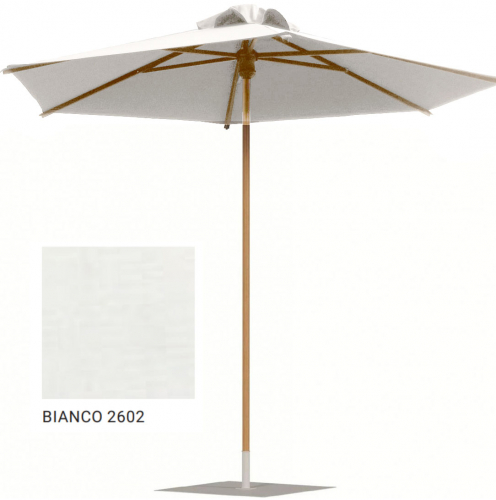 Каркас зонта выполнен из окрашенной твердой древесины кото высокого качества, купол выполнен из олефина. Волокна этого материала быстро высыхают после намокания и плесень просто не успевает образовываться в его текстуре. Кроме того, окрашенные на этапе изготовления волокна являются на удивление стойкими к выцветанию, поэтому прямые солнечные лучи и ультрафиолет им не страшны.