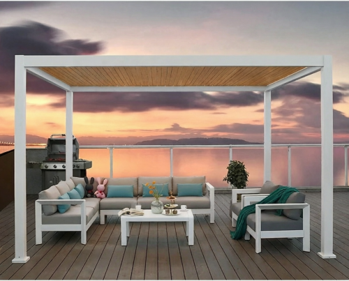 Биоклиматическая пергола Pergola 120 Series - это интеллектуальное решение для организации комфортного пространства на открытом воздухе, где элегантный дизайн гармонично сочетается с передовыми технологиями. Ключевое преимущество конструкции - регулируемые алюминиевые жалюзи с моторизованным управлением: одним нажатием кнопки вы можете плавно изменять угол наклона ламелей, контролируя уровень естественного освещения и создавая идеальную тень в жаркий день. Линейный, минималистичный профиль перголы гармонично вписывается в современные архитектурные решения, подчеркивая стиль любого outdoor-пространства.