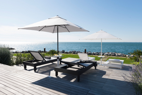 Eos - это профессиональный зонт класса люкс без волана прекрсно дополнит зону отдыха на пляже и у бассейна. Благодаря своим внушительным размерам, практичности (системе, облегчающей открывание и закрывание) и минималистичному дизайну, он идеально подходит для использования в самых престижных местах.