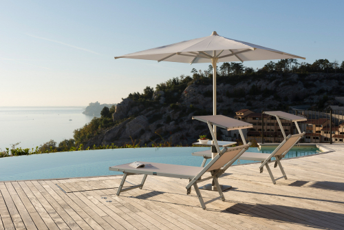 Созданный специально для работы в самых неблагоприятных условиях, характерных для морских курортов, он является отличным решением для отелей, оздоровительных центров, спа-салонов и бассейнов, а также для частного использования. Элегантный зонт, который также станет изысканным аксессуаром для открытого пространства. Безупречное качество изготовления и превосходные используемые материалы делают Crono эталоном на современном рынке.