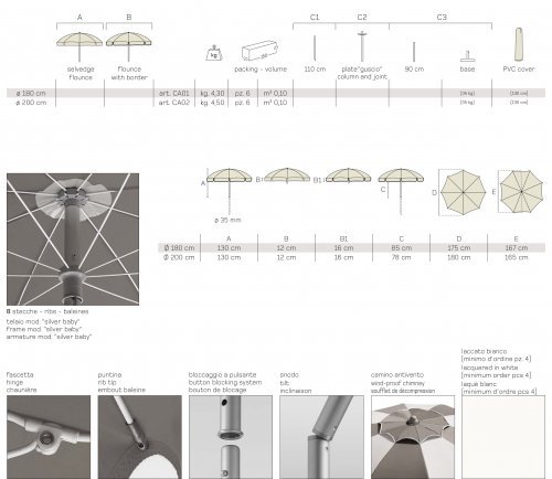 Cariddi - это профессиональный элегантный зонт, который можно использовать на пляже, у бассейна или в саду. Модель создана для сложных условий, характерных для морских курортов, таких как плохая погода, ветер и соль. Благодаря сдержанному дизайну и исключительной практичности, Cariddi идеально подходит для отелей, оздоровительных центров, спа-салонов и бассейнов. Превосходный зонт, который также может служить изысканным аксессуаром для уличной мебели. Безупречное качество изготовления и используемые материалы делают Cariddi эталоном на современном рынке. Изделие идеально подходит даже для частного использования.