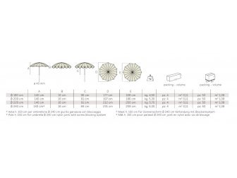 Crono - это профессиональный зонт без волана, который ценится за его современный дизайн, дополняющий традиционные гарантии защиты от ветра, соли и ультрафиолетовых лучей. Модель идеально подходит для отдыха на пляже и у бассейна, для удоства он может быть дополнен практичным встроенным небольшим столиком.