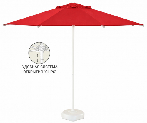Kiwi Clips - профессиональный зонт с центральной опорой из алюминия, что обеспечивает высокую устойчивость модели. Он защитит от ярких солнечных лучей и создаст приятную затененную атмосферу в частных садах, открытых летних площадках кафе, баров и ресторанов, зоны возле бассейна.