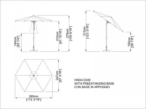 Уникальный наклон и прочные материалы делают зонт Onda идеальным продуктом для садов и частных террас. Алюминиевый каркас с дубовой верхушкой и простым механизмом открытия. Спицы могут быть заменены по отдельности без необходимости разборки всей конструкции, а ткань навеса легко снимается для обслуживания или замены. Опора, состоящая из двух частей, легко разбирается, и оснащена стальной арматурой. Все продукты FIM разработаны и изготовлены в Италии с использованием лучших материалов для наружного применения, чтобы гарантировать исключительную долговечность даже в самых жестких условиях окружающей среды.