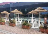 Круглый зонт Africana предназначен для использования на морских побережьях. Мощная и крепкая опора из дерева с оцинкованным металлическим стержнем внутри, дополнительные спицы, удерживающие купол. Благодаря используемым материалам зонт прекрасно спасает от солнечных лучей, создавая плотную тень и не боится дождя.