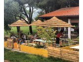Покрытие купола: натуральный африканский тростник. Африканский тростник, также известный как капский тростник, представляет собой натуральный и экологический продукт из Южной Африки. Идеально подходит для ветреных районов, требует минимального обслуживания.