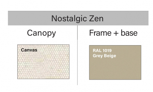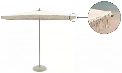 Nata UX Nostaligic Zen - это зонт с центральной опорой и куполом диаметром 2800 мм, цвет рамы - серо-бежевый. Купол зонта цвета Canvas отделан бахромой того же цвета.