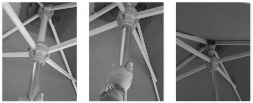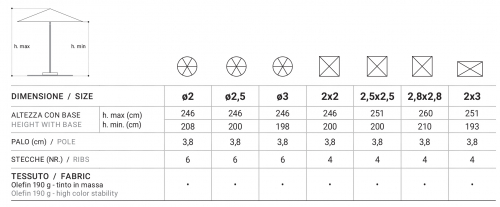 Каркас зонта выполнен из окрашенной твердой древесины кото высокого качества, купол выполнен из олефина. Волокна этого материала быстро высыхают после намокания и плесень просто не успевает образовываться в его текстуре. Кроме того, окрашенные на этапе изготовления волокна являются на удивление стойкими к выцветанию, поэтому прямые солнечные лучи и ультрафиолет им не страшны.