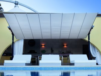 Шатры, тенты и навесы - солнцезащитные конструкции больших размеров, которые в том числе оберегают и от непогоды. Их используют для затенения летних кафе, у загородных домов, на садовых участках, во время различных мероприятий, связанных с отдыхом на природе, вечеринок и тому подобное.