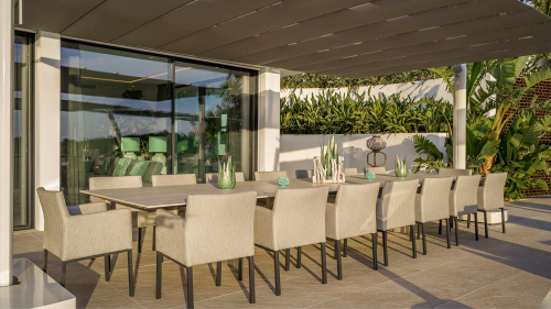 Навес Flexy Large - модульная система с современным минималистичным дизайном, которая позволяет затенить любые открытые пространства. Доступны всевозможные размеры, которые можно комбинировать друг с другом, имея возможность затенять большие площади. Flexy идеально подходят для использования в сфере Contract (отели, рестораны) и в частных пространствах (виллы, частные сады). Навес, который можно легко закрыть благодаря системе лебедок, наклоняется для дополнительной тени в течение дня. Все изделия FIM разработаны и произведены в Италии с использованием лучших материалов для наружного применения, чтобы обеспечить долгий срок службы даже в самых суровых условиях окружающей среды.