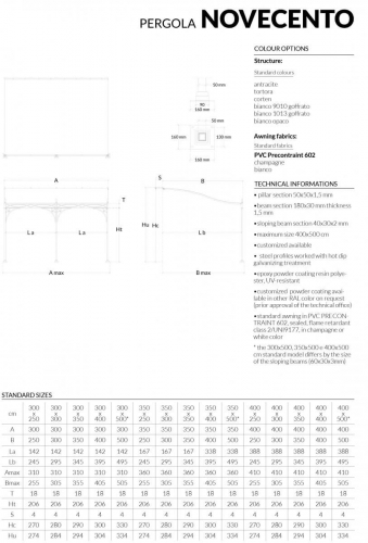 Навес Novecento - мягкие линии и элегантность для идеального и естсественного продолжения дома. Совмещение новых цветов и тканей, большой выбор стандартных размеров и множество возможностей для индивидуального подхода.